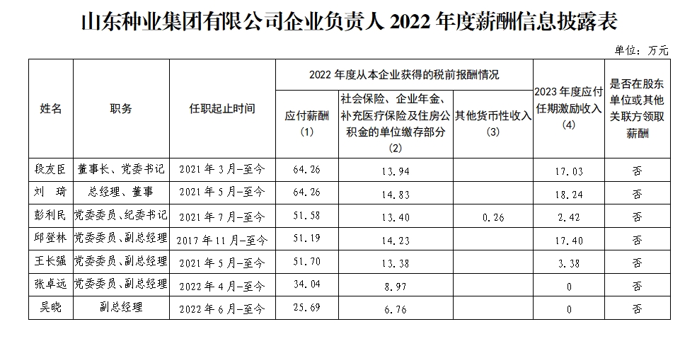 山东快盈VIII集团有限公司企业负责人2022年度薪酬信息披露表