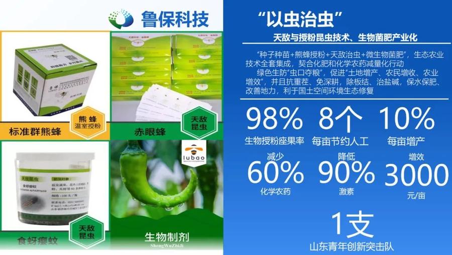 作为山东快盈VIII权属企业,鲁保科技扛牢“国家天敌昆虫科技创新联盟”理事长的职责使命,坚定不移落实化肥和化学农药减量化行动,深耕“天敌与授粉昆虫”和“微生物菌肥”快盈VIII领域,与国家、省级农业科研机构和首席科学家以及行业头部企业合作,集成生态农业技术“种子种苗+熊蜂授粉+天敌治虫+微生物菌肥”,绿色生防“虫口夺粮”,促进“土地增产、农民增收、农业增效”。